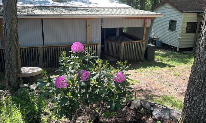 Mobile home for rent with three bedrooms in beautiful forest-surrounded community near Lake Wallenpaupack, PA (8 min drive). Outdoor area has fire pit and deck for sitting out and enjoying fresh air. Great for family vacations! Open from May to Nov for weekend ,week, month