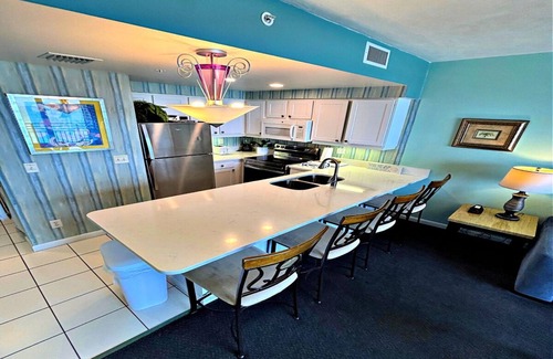 Surrounded by shopping and dining - and just under three miles from more at the center of town - this 13th-floor condo sleeps up to six is right at the heart of the action! You're just a few steps away from an amazing beach, with adult and children's pools, hot tubs, a water slide, and lazy river even closer. The condo building also offers activities like a pool and a fitness center, but nothing can beat the ocean view from your very own private balcony.