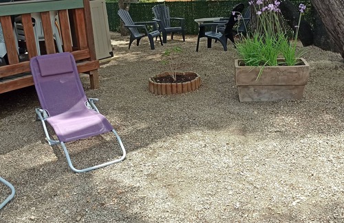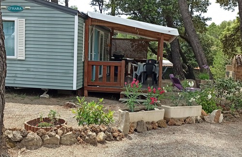 Mobilhome equipped with reversible air conditioning 2 bedrooms capacity 6 beds, shaded terrace not overlooked, TV and DVD player, coffee maker, electric kettle and barbecue, hob with 4 gas burners, microwave, fan, vacuum cleaner and iron. Fridge freezer, etc. Deckchairs, possibility of putting a two-person tent on the site for teenagers.