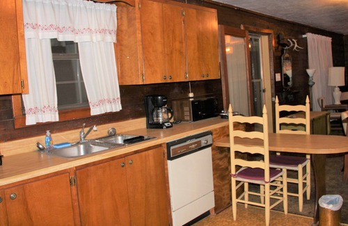 Vaden Hunt House is located on the South Fork of the Guadalupe River next door to the River Inn Resort on Hwy 39 - Hunt, TX and is a 2 Bedroom 1 Bath cabin that will accommodate 5 adults in beds; Bedroom 1 -1 Queen Bed, Bedroom 2 - 1 King size bed and 1 twin bed and additional small child could sleep on the sofa or bring an air mattress if you like. The cabin has an open floor plan with the fully equipped kitchen / dining / living room and is the perfect place for family to reconnect , a romantic getaway or even a Girl's Trip. You will enjoy the wonderful (fully functional) Rock Fireplace and will definitely want to curl up with a good book, take a nap or watch TV here especially during the cooler months! The covered porch adds to the charm of this rustic getaway where you can relax or dine. The log house is fresh and clean with all new paint throughout, linens that include bedding, and towels for bathroom and kitchen as well as kitchen accessories including dishes, utensils, storage containers and small appliances (mixer, toasters, drip coffee maker and a kettle for tea).