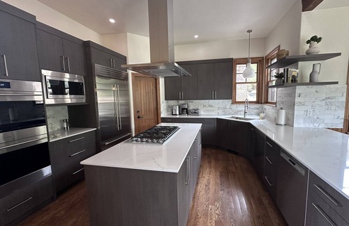 Newly renovated and fully stocked modern chef's kitchen with Wolf and Sub-Zero appliances and casual dining area that seats up to ten. Formal dining room also seats up to twelve people.