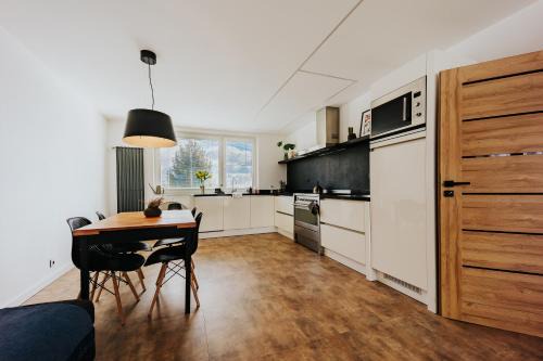 25 miles from Bus Stop Strážné, the apartment features a garden and a bar. There's a terrace and guests can use free Wifi and free private parking. Featuring a balcony and garden views, the spacious apartment includes 2 bedrooms, a living room, satellite flat-screen TV, an equipped kitchen, and 1 bathroom with a walk-in shower. Towels and bed linen are offered in the apartment. For added privacy, the accommodation has a private entrance and soundproofing. Pardubice Airport is 46 miles from the property.