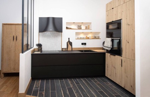 - Cuisine équipée (lave-vaisselle, four, micro-onde, induction, Nespresso, blender, matériel pâtisserie, etc) et ouverte sur le séjour (TV 140cm, fibre) et son espace repas (6pax).