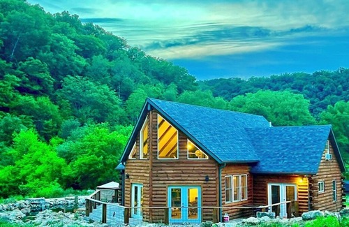 ValleyView Lodge…. a large 4 bedroom / 2.5 bathroom, A-Frame Cabin with the perfect mix of seclusion and accessibility. It is surrounded by towering bluffs of Allamakee County’s driftless area & located just a few miles South of the popular river resort town of Lansing Iowa. The Lodge provides an ideal getaway for families, couples, or corporate retreats.