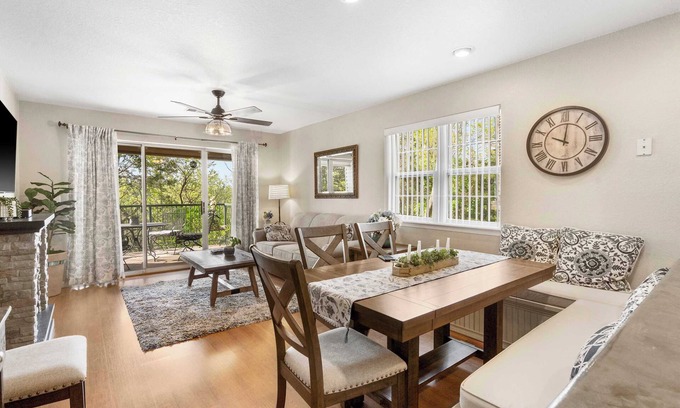 Valley View Treehouse has all the best elements of a Branson Getaway: an ideal location close to Downtown, onsite resort amenities, beautiful interiors, and lush nature surrounding the property.