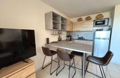 Valras'Loc - The Wave Terrace is located in Valras-Plage, just a 2-minute walk from Casino Beach and 9.3 miles from Fonserannes Lock. The property is around 9.4 miles from Mediterranee Stadium, 11 miles from Beziers Arena, and 11 miles from Saint-Nazaire Cathedral. Reserve Africaine de Sigean is 31 miles away and Saint-Thomas Golf Course is 15 miles from the apartment. The air-conditioned apartment is composed of 1 separate bedroom, a living room, a fully equipped kitchen with a dishwasher and oven, and 1 bathroom. A TV is available. The accommodation is non-smoking. Aqualand Cap d'Agde is 19 miles from the apartment, while Espace Georges Brassens is 30 miles from the property. Beziers Cap d'Agde Airport is 10 miles away.