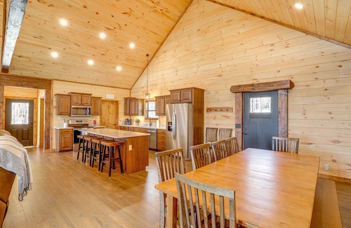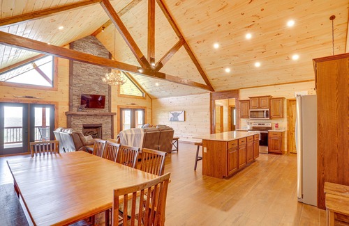 Featuring a spacious wraparound deck, an updated open living area, and a game room with a foosball table, this 4-bedroom, 2.5-bath vacation rental has everything you need for a memorable family getaway! Take in unbelievable mountain views as you sip your morning coffee before heading out to explore. Less than a mile away from the scenic views, caves, and trails of the Big Spring leg of the Ozark National Scenic Riverways, this cabin invites you to enjoy the best of Van Buren with ease.
