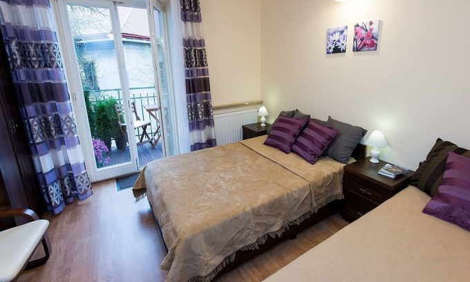 Experience the perfect stay in our charming 3-bedroom apartment located in Krakow's vibrant city center, just 5 minutes from the main square. Designed to comfortably accommodate up to 7 guests, the apartment features air conditioning, a huge balcony with garden furniture, two modern bathrooms with showers, and a fully equipped kitchen with a dining table for shared meals.