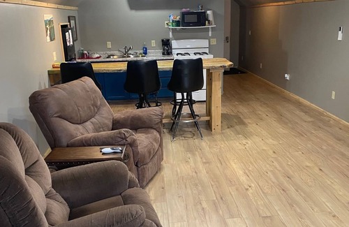 Loft style space with kitchenette, bar, tv, one Queen bed, full bathroom with shower located above private garage. Ample parking and close to local state parks- Fayette State Park and Kit-to-chi-kipi (the big springs). The garage is also available with heat for additional fees. This is very convenient for fisherman who may need to work on equipment after dark!! The perch and bass fishing have escalated in the last 3 years, and of course as always the end of the peninsula holds the best salmon fishing that the Great Lakes have to offer!!!