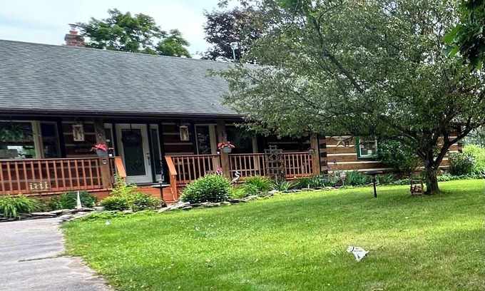Varty Lake Lodge is a 3 bedroom log house with 3 acres of property on Varty Lake in Yarker ON.