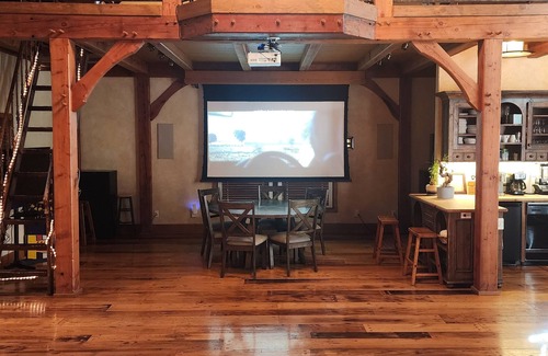 Yellowstone Lodge is the perfect retreat for those who enjoy a cozy combination of leisure and adventure. After a day of hitting the Sundance slopes or exploring the natural treasures of the Uintah National Forest, settle down for a night of entertainment and relaxation. Gather your guests around the spacious rock campfire with large rock slabs for seating and long roasting sticks for an evening of s’mores. After you’ve enjoyed the great outdoors, the entertainment continues inside the cabin, which is Alexa enabled with Amazon music unlimited. The TV has a free 200+ movie library to stream, YouTubeTV streaming cableTV. The great room’s centerpiece, a massive stone fireplace can be turned on with the press of a button and radiant heat is installed throughout the home, keeping your toes toasty and equipping your guests for a cozy evening with unlimited entertainment.