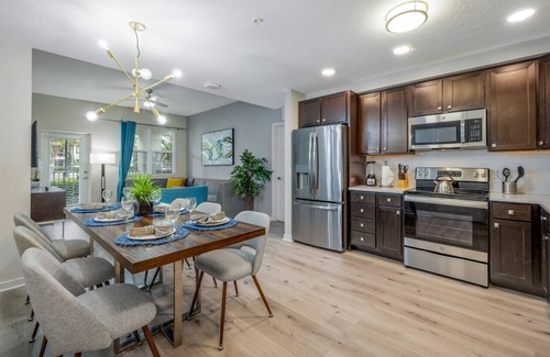 Our luxurious 2-bedroom, 2-bathroom condo at Vista Cay Resort offers a warm and inviting space for your vacation, accommodating up to 6 guests comfortably. Nestled on the first floor, this condo is designed to be your "home away from home," providing a relaxing and unforgettable experience in the heart of Orlando.
