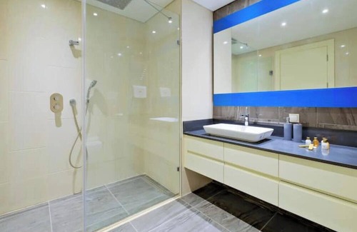 Bathrooms - This modern bathroom has a beautiful-looking mirror, shower, and sink. Constant hot water and high water pressure are available. The toilet seat has a bidet. A washing machine is also placed in the bathroom and can be used with just a touch of a button.