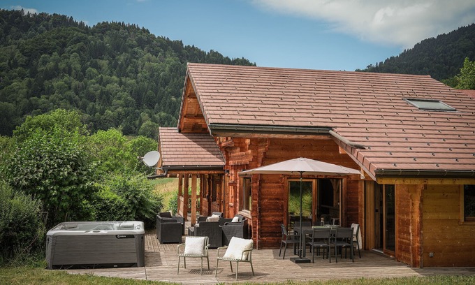 Outside, the chalet offers a hot tub installed on a terrace with an unobstructed view of the mountains. Summer or winter, it is the ideal place to relax after a day of hiking, skiing or simply to enjoy a moment of well-being in the heart of nature. A barbecue is also available, perfect for sharing friendly meals outdoors facing the alpine landscape.