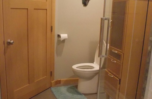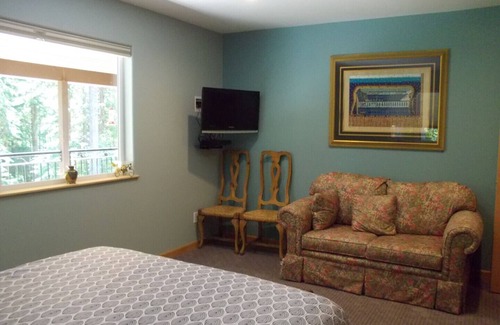 A spacious, and private, self contained one bedroom suite on the main floor of a comfortable rural home on Quadra Island. Lovely bedroom with luxurious ensuite bath and sitting area. Roll-away cot available. Private entrance with parking just outside the door. Views from the bedroom to the 12 acre property's expansive gardens and down the hill to the pond. Feel free to roam the property's easy access trails, in addition to several well maintained community walking trails within an easy walk or drive. 4kms from the Quathiaski Cove ferry terminal and amenities, 1.5 kms from a public beach access, 3kms to the golf course and 7kms to beautiful Rebecca Spit. Shared laundry, barbeque and outdoor kitchen. We no longer offer Breakfast. Owner Laurie lives on site with a large, very friendly dog and looks forward to welcoming you. For a larger group please see our companion listing on this site.
