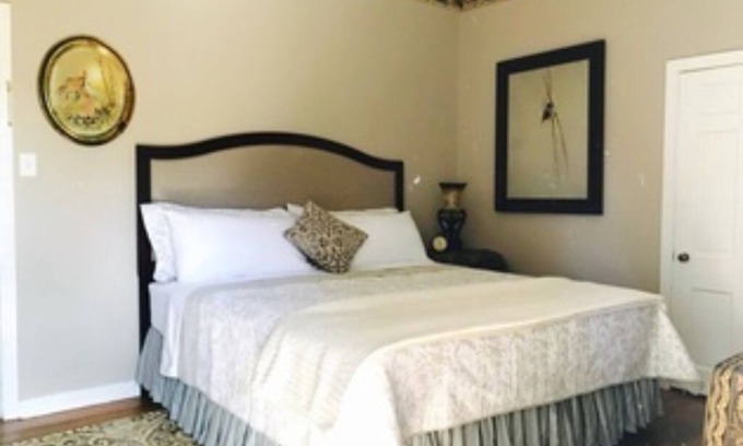 ?The Veranda Suite offers 2 private bedrooms. The first bedroom - The Veranda - boasts a king bed and private access to the grand veranda which runs the length of the home providing a wonderful retreat to the outdoors. It's a great place to enjoy morning coffee, a lazy afternoon with a good book, an evening cocktail, or a visit with friends and family. You will also find the Veranda Room open and airy with high ceilings and a large window for soft natural light. For your comfort, the room is furnished with a side chair, dressing table and mirror, bedside table with lamp, a flat screen TV with streaming, and an electric fireplace.