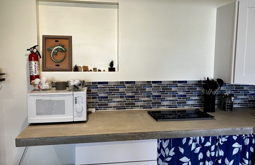 Our private suite is in the lower level of our home in the charming town of Kanab. You will have a private entrance next to your parking space. There's a porch to relax on after your adventures to watch the sun glow off the red rock cliffs or to enjoy a morning coffee. You will be close to hiking trails, restaurants, & Jacob Hamblin City Park. Your private parking space can fit two cars; additional parking for boats, UTVs, etc is available. Two separate bedrooms, spacious living area & a roomy restroom. Large, south facing windows provide plenty of sunshine to fill the spaces. Includes 5G fiber internet and a Roku TV to help you stay connected if you so wish. The kitchen is stocked with the a refrigerator, air fryer, toaster, microwave, Keurig with coffee/tea/cocoa and fixings (sugar/ creamer), spices, pots and pans, silverware, dishes, and a 2-burner stove. If there is anything you need, we are happy to provide anything we can.