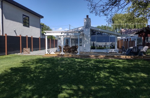 Beautiful, one level, 1900 square foot beach house located on a bird sanctuary at the end of beautiful Lake Okanagan in Vernon, British Columbia. A very large lake with access to Kelowna,and Penticton by boat.