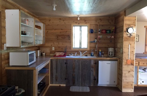 We have worked very hard to make our Cabin rustic but modern for an enjoyable stay for everyone. For convenience, we have installed wi-fi and television as well. The bed and hide-a-bed are new queen mattresses with the hide-a-bed upgraded to memory foam, both very comfortable. There is another couch in the living room for sleeping if needed. The living area is spacious with great views from inside as well. Kitchen, dining area is spacious and has a new gas range and dishwasher. The wood burning stove is just for looks and not useable at this time. Hot water heat is throughout the house, but there is no air conditioning as we've found open windows and fans are sufficient. The bedroom has a queen bed, dresser, large closet, all the amenities to make your stay comfortable. The bath has a tub/shower combination with jets in the tub to relax in after a hard day of hiking, hunting playing or just to enjoy. Everything is fully equipped, linens, dishes, etc. You can sit outside on the deck and enjoy the wildlife, and serenity of the area while cooking on the grill, all the while star gazing in the evening.There is ample parking for 2 or 3 vehicles. Unfortunately at this time, the property is not handicap accessible.