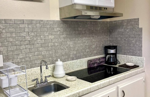 Very lucky POOL home, is a very cozy relaxing and fully equipped guesthouse that can fit up to 4 guests. It has a private entrance and ample free street parking. It is located close to Soboba Casino, Idyllwild, Hemet Lake, Shopping Centers, and restaurants. Enjoy your stay at this relaxing and family friendly guesthouse. It offers a queen size bed, a futon and 1 additional twin mattress in the living room/bedroom area The kitchen is fully-equipped. You may go swimming in our shared swimming pool or Bbq in your private patio space.