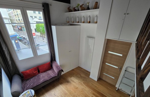 This non-smoking studio is on the 1st floor of an old building, typical of the Marais with a very beautiful height under ceiling.