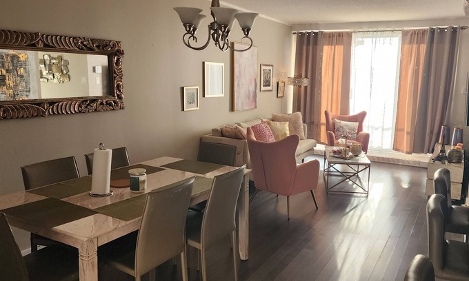 This unique place has a style all its own. A very quiet homely condo with a modern contemporary style. 15 mins to downtown Montreal. Aesthetic and comfort abound in the charming and well furnished unit. Spacious and drenched in natural light. Take a look around, we’d love to host you. Close to all Amenities, grocery stores and Marche Central Shopping outlet (one of the best in town), Centropolis Laval (Most popular restaurants) and 20 mins to outlet Mirabel