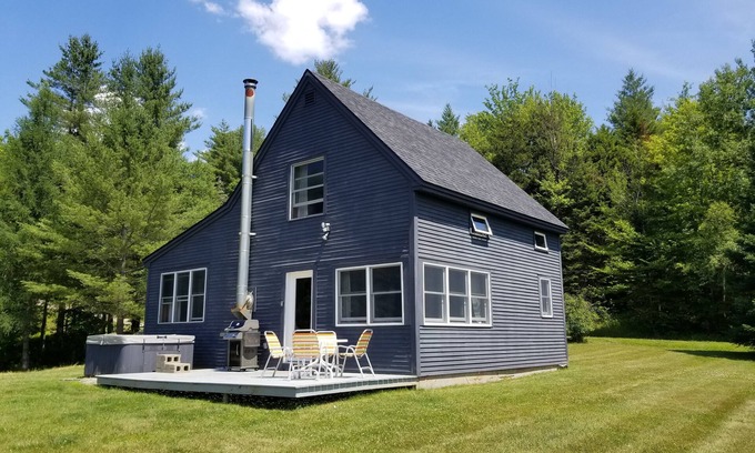 Close to skiing and hiking and adjacent to a golf course and cross country ski and snowmobile trails, this is the perfect spot from which to explore the outdoors. The wood stove and outdoor hot tub make this a cozy retreat at the end of the day and with it's complete privacy, this country house is also ideal for reading, watching a movie, relaxing and rejuvenating. The two queen bedrooms on separate floors offer privacy, luxury linens and down comforters, and an overflow loft accessed by a ladder can sleep an extra adult in a pinch. A fully-equipped kitchen, outdoor deck and gas grill are ideal for warm cozy nights at home. Well behaved pets are welcome.