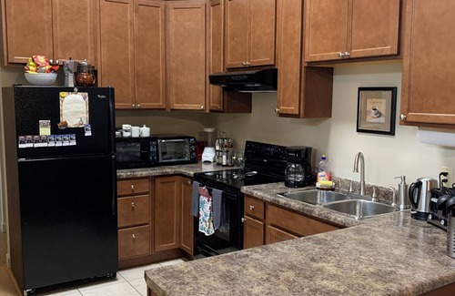 The apartment allows complete self sufficiency-from forks to all furnishings-all appliances-bedding......51" curved Samsung TV-netflix-youtube-Prime-hey Google......