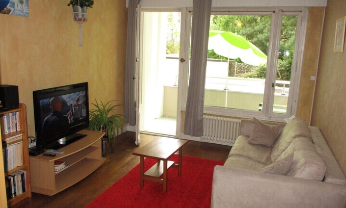 Spacious apartment (59m² + balcony 10m²) on the ground floor in a quiet area 10 minutes walk from the lake and 15 minutes from the old town.