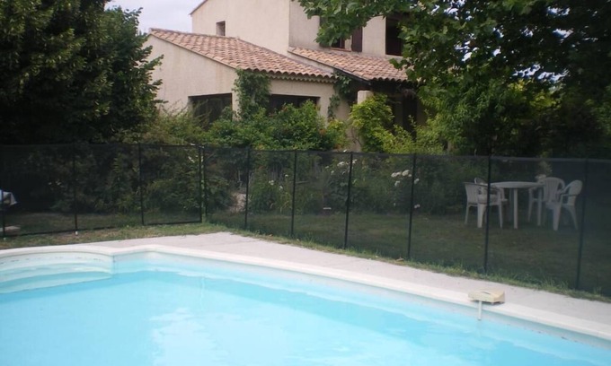 In a very quiet residential area, 17 km from Avignon, independent villa on 1700 m2 of fully fenced wooded grounds, secure swimming pool: ideal for families with children. The sun and the heat for swimming, and the cool shade for naps and outdoor dining. Ideally located for visiting many tourist sites. The countryside near the mountain (Ventoux 30 km, Luberon 15 km, Alpilles 25 km) and the sea (90 km from Marie-de la Mer, Salin de Giraud and Grau du Roi). Decreasing prices depending on duration.