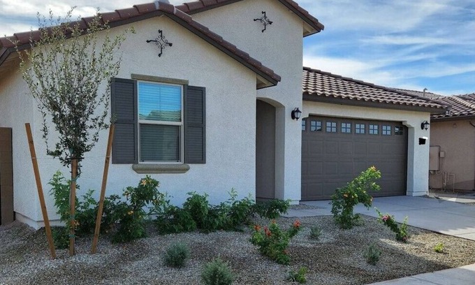 Located in Tolleson, this house is a very spacious dream home. With 4 bedrooms including 3 queen beds and 2 twin beds, guests will have plenty of space to relax. This is Great for one Large Family or two separate families or friends who would also have extra privacy. There are two separate Full Kitchens, each with it's own Stove, Fridge, Microwave, Washer & Dryer and utensils. There are 2 Walk-in Closets and a 2 car garage which has a separate entry for each of the units. This is a Lennar Builders 2 Unit - Next Generation home.