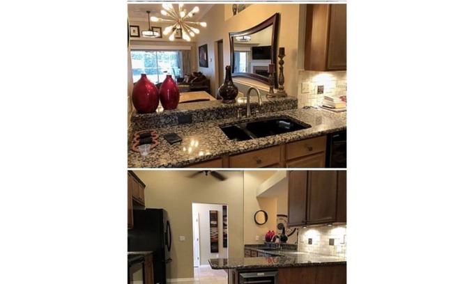 This house is very spacious the bedrooms are a perfect size the living room is perfect because you can see the patio the pool And the area bar outside. The kitchen is very clean and we include the laundry room with washer and driver machine super clean.