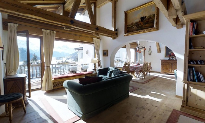 Very spacious,tastefullyfurnished 5-room-maisonette-apartment with a big balcony and an imposing panorama view over the lakes of Champfér and Silvaplana.