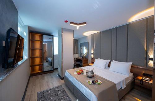 Conveniently set in the Bagcılar district of Istanbul, Vess Hotel is located 10 miles from Halic Congress Center, 11 miles from Suleymaniye Mosque and 11 miles from Spice Bazaar. Providing a restaurant, the property also features a bar, as well as a sauna and a hammam. The property provides a 24-hour front desk, airport transportation, room service and free WiFi throughout the property. Guest rooms at the hotel come with air conditioning, a seating area, a flat-screen TV with satellite channels, a safety deposit box and a private bathroom with a bidet, free toiletries and a hairdryer. Vess Hotel has certain units with city views, and every room is equipped with an electric tea pot. The rooms include a desk. Guests at the accommodation can enjoy a halal breakfast. Galata Tower is 12 miles from Vess Hotel, while Basilica Cistern is 12 miles away. Istanbul Airport is 19 miles from the property.