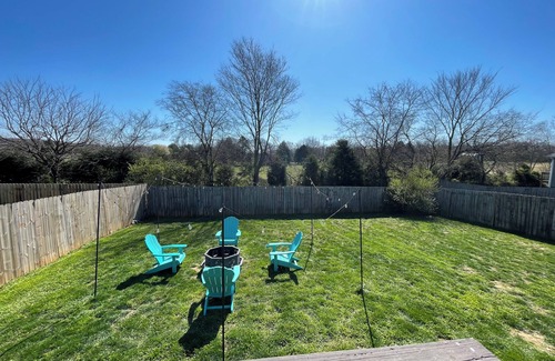 The backyard is fenced and has a large deck with a peaceful view. There is also a grill and a patio set for outdoor relaxing. The neighborhood is quiet and family-friendly. A great home base for all of your adventures in Bowling Green!