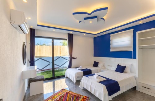 It is located in Sarıbelen location of Kaş Kalkan District. Our villa, which is intertwined with nature, is a villa with a nature view. It is 12 km away from Kalkan center. The pool terrace of our villa is among our conservative villa options, away from foreign eyes. There is table tennis and table football in the garden, which will make your holiday more enjoyable. You can have a pleasant holiday in your private pool. There is a jacuzzi in the suite bedroom of our villa. Our villa is decorated modern and stylish. It is a villa suitable for honeymoon couples and nuclear families. Villa Mavi offers you the opportunity to have a holiday in a villa that is entirely your own, and it is a villa that we recommend to you and that you will be satisfied with. It offers our valued guests a peaceful and unforgettable holiday away from the city noise.