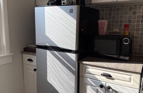 The bedroom features two comfortable full-size beds, and the living room includes a pull-out couch, sleeping up to 5 guests. You'll enjoy a fully equipped kitchen, in-unit washer and dryer, and 1GB high-speed WiFi—ideal for remote work, streaming, or staying connected during your stay.