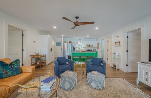 Come enjoy the easy lake life at this vibrant and fun lake home! Relax on the oversized lakeside deck, enjoy the dock, explore the lakeshore! There is a main house and an adjacent studio apartment space. Both will be available to you during your stay. Here are the bed and bath arrangements: Main House - 3 Bedrooms, 2 full bathrooms. Primary bedroom has a king bed, 2nd bedroom has a queen bed and the 3rd bedroom has twin bunk beds. Apartment - Queen bed with futon. Full bath and kitchen.