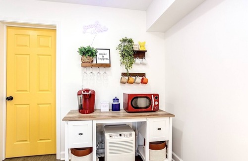 ⚡️ Welcome to our luxury designed, light-filled basement suite right in the center of Lawrenceville with its own private entrance and driveway for extra privacy. Large windows allow for tons of natural light. A dreamy dining area with great views of the outside and lighting speed internet make this a perfect place to work from home. The suite is equipped with a cute retro fridge and microwave, snacks, beverages, and best of all a Pinterest inspired coffee station because who doesn’t like coffeee?!