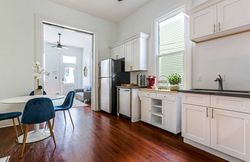 While you're here, you can enjoy all the comforts of home and more, including a refrigerator and an oven, as well as a stovetop and a dishwasher. Other amenities include towels, an electric kettle, kitchenware and utensils, and a toaster.