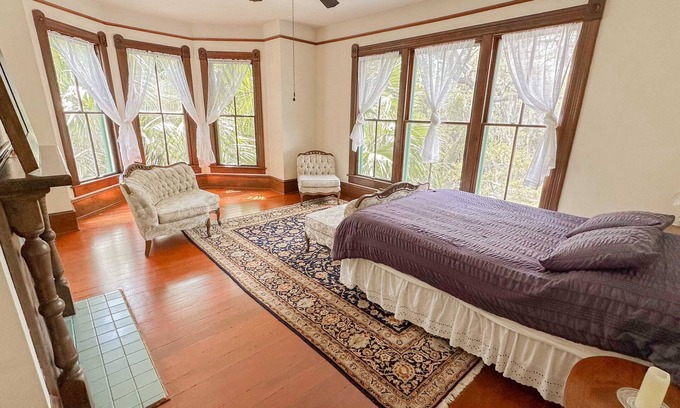 Welcome to the 2nd floor unit in The Richards House. Travelers will appreciate the Victorian character. This 1BR+1BA apartment has a spacious yet cozy living room, with large windows that fill the space with natural light. Nestled in a quiet neighborhood, our art-filled downtown, with shops and restaurants, is just a short walk away. On Gator Football days, guests are invited to park 1 car at Anna Marie’s long-standing tailgate at Grandma’s Gator House, just 1 ½ blocks from The Swamp.