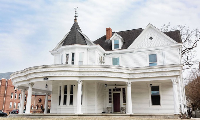 This restored historical home nestled into the heart of a Blue Ridge Mountain Town offers the classic Bed & Breakfast experience! The century-old Victorian architecture will transport you back in time while the modern amenities add a touch of luxury. Located a lovely two-block stroll away from Buena Vista's Downtown, a ten-minute cruise from the entrance to the Blue Ridge Parkway, and just twenty-two minutes from our neighbor, the Historic downtown Lexington, the Blue Ridge Abbey Bed & Breakfast is the perfect place to kickstart your adventure. And if rest and relaxation are more your style, our delicious breakfast, coffee and tea bar, cozy parlor, luxurious king-size beds, heated bathroom tiles, and mountain views offer everything you need for a peaceful, restorative stay.