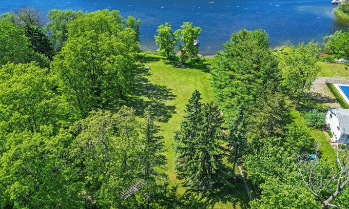 The moment you step inside, you'll be greeted by a cozy entryway leading to a kitchen brimming with historical charm, including a unique pass-through cupboard to the dining room. Enjoy your meals in the dining area, featuring a grand bay window that frames stunning views of the expansive backyard and the glistening lake.