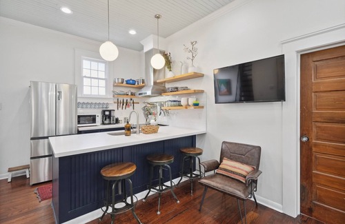 Enjoy all New Orleans has to offer at this luxury upstairs unit in a double home one house off St. Charles Ave, at the border between the Garden District and Uptown! The streetcar is steps away, to take you to Audubon Park or downtown to the French Quarter. There are restaurants, a grocery store, coffee shops, and bars, all within blocks, and miles of shopping on Magazine St 5 blocks away. Two bedrooms plus a loft, 2 bathrooms, and a large balcony with views of St. Charles Av.
