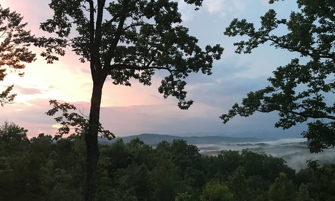 Gorgeous long range views from atop Mary King Mountain near friendly Murphy, North Carolina. Two bedroom, two bath Chalet has loft - wake up to natures beauty.