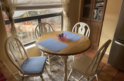The apartment has a very nice fully equipped kitchen space to sit and play cards or board games and 2 comfy chairs to kick back and relax after a day of hiking the nearby trails.