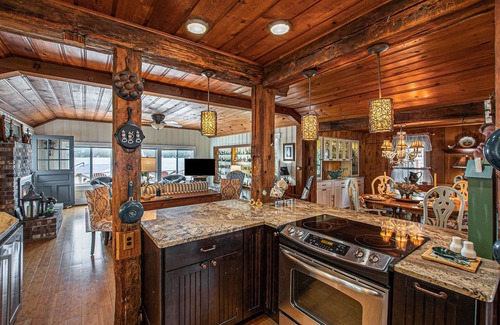 For your next family vacation, look no further than this cozy Hamlin Lake retreat located in Ludington Michigan and near Lake Michigan beaches, state parks, and quaint downtown Ludington. At this 6-bedroom, 4-bath vacation rental, you’ll have access to at-home comforts and amenities including a fully equipped kitchen, comfortable sleeping arrangements for at least 12, a heated in-ground pool, hot tub, kayaks, and more. Spend your days relaxing at the pool, fishing out front, or rent a boat at a nearby marina for a day on the water. Each evening you can catch beautiful sunsets while you warm in front of a gas firepit from the large 2-level deck.
