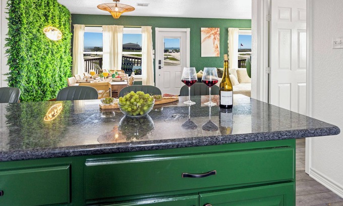 Discover the beauty of Surfside Beach from this custom designed 3-bedroom house by Luks Concepts. Step into a soothing oasis with Full gourmet kitchen with soft water, filters and RO drinking water, super comfortable living room, large dining area that seats 10, 2 king beds, 2 full beds, and 1 twin bed to accommodate all guests. Bathrooms complete with a bidet, bathtub, and shower. Make your holiday one for the books with a stay at our place. Located right on the beach with a private beach entrance through the resort. Firepit, swings and a large grassy area to enjoy- Private deck overlooking the gulf and spectacular sunrise / sunset views too! Crabbing pier and boat launching right on site- golf carts, waverunners and surfboards available for rent on site!