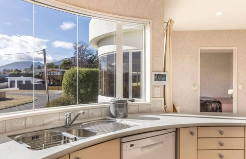 This family home offers four bedrooms and two bathrooms, perfect for larger groups or families. You can unwind and soak in the stunning views from the large living and dining area complete with a heat pump upstairs and free Wi-Fi.