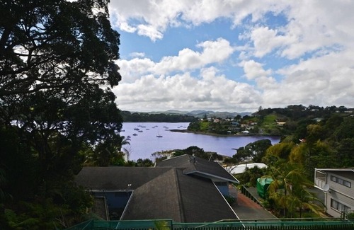 Sitting in a very sunny elevated position above Mill Bay in Mangonui, The Lookout, is a newly refurbished beautifully decorated holiday home just waiting for you to build happy holiday memories. The 4 bedroom two bathroom house has everything you need for that special break away. Large open plan living downstairs with wonderful indoor outdoor flow. The deck is perfectly positioned for the sun and also those magical views over Mill Bay and the Mangonui Harbour. Downstairs has three double bedooms and upstairs has a huge master bedroom with its own en-suite as well as its own deck. The kitchen and dining room is an entertainers delight. Cook whilst you watch the fish jump and birds dive into the water below the house. The sunken TV room downstairs has large flat screen TV and free-view connection. There is also complimentary WIFI available as well. There is a full bathroom downstairs complete with bath and shower..